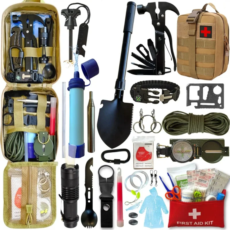 Multi-Function Survival Kit: Includes first aid supplies, emergency tools, and survival gear.